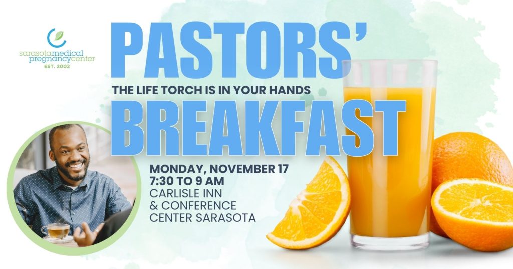 Join us for a special Pastors’ Breakfast—a time to connect with local pastors, hear how God is working through Sarasota Medical Pregnancy Center, and discover how churches can partner together to serve women, men, and families in need. Enjoy a hearty breakfast and meaningful fellowship as we unite for life.